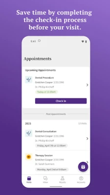 - Check in before your visit – Easily check in for appointments and save time by completing any necessary documentation before your arrival. (Your provider(s) must support Self Check-In to use this feature)