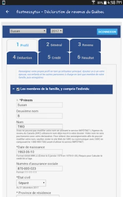 Ajouter vos enfants et les personnes en charge dans l'onglet profil pour assurer que vous obtenez tous les crédits applicables en charge.