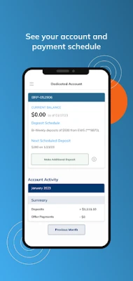 View details related to all of your Enrolled Debts. Review through your Trust Account History, and see what's coming up in your Scheduled Activity.