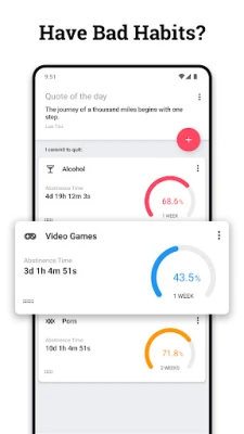 To keep you motivated and focused in your quest to get rid of your addictions, Quitzilla will display you “Quote of the Day” from various famous authors.