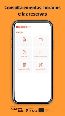 Consultar dados a apagamento e histórico de pagamentos; Aceder a informações da tua candidatura a alojamento: • Consulta de documentação e prazos; • Estado da candidatura; • Aceitação de alojamento; • Agendamento de Check-in e Check-out. Ajudar a evitar o desperdício alimentar auxiliando numa gestão de recursos alimentares sustentável: • Consulta de ementas, horários e preçários; • Marcação de refeições; • Consulta de histórico de marcações.
