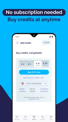 • Call United States: Mobile and landline calls for just $0.04/min.